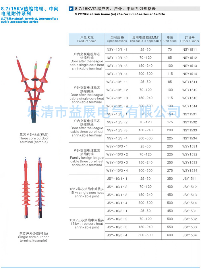 8.7-15KV單芯戶內(nèi)電纜終附件價(jià)格只提供參考,實(shí)際價(jià)格請(qǐng)咨詢廠家熱線:0577-61732562