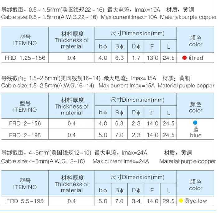FRD子彈型母預(yù)絕緣端頭 Home您現(xiàn)在的位置:網(wǎng)站首頁 >> 產(chǎn)品中心 >> 冷壓端子