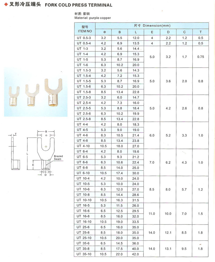 UT叉形冷壓線鼻子 Home您現(xiàn)在的位置:網(wǎng)站首頁(yè) >> 產(chǎn)品中心 >> 冷壓端子