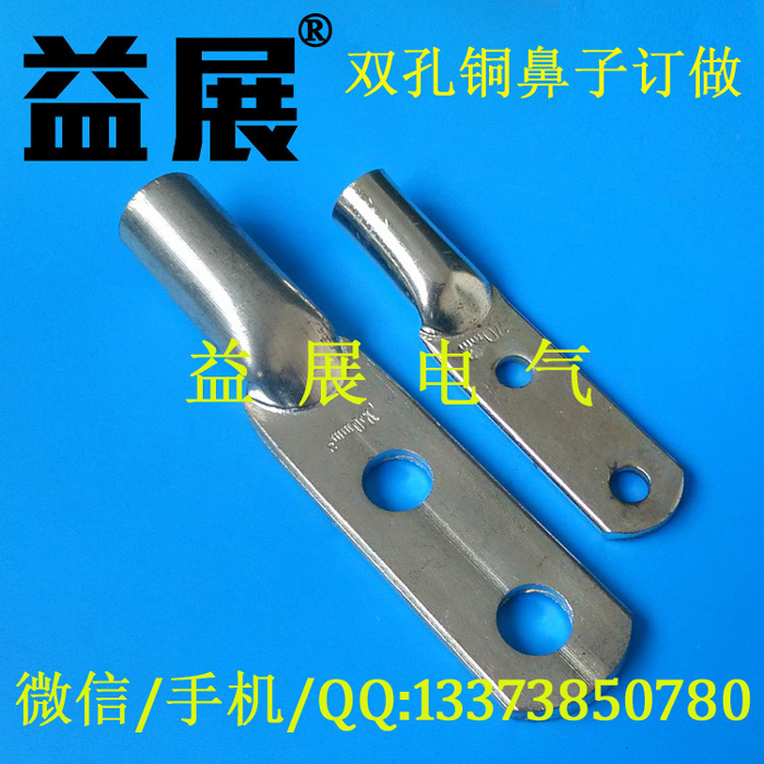 DTG雙孔管壓銅鼻子,鍍錫雙孔線鼻子,訂做非標(biāo)銅鼻子,非標(biāo)雙孔銅鼻子加工訂做,益展電氣有限公司