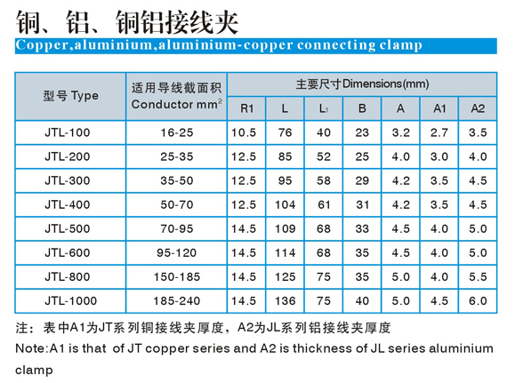銅、鋁、銅鋁設備線夾(JT、JL、JTL)