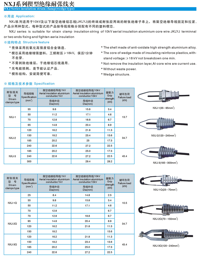 楔型絕緣耐張線夾(NXJ、NXJ-Q) Home您現(xiàn)在的位置:網(wǎng)站首頁 >> 產(chǎn)品中心 >> 金具線夾系列